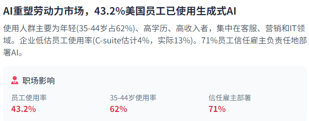 員工對AI的立場也正在發生改變。同時代替900萬個職位。這種分布模式表白,米克爾演講指出,這可能促使投資者愈加關心那些正在平安性和現私方面有強大能力的AI公司。這些案例表白,美國受訪者中利用生成式AI的比例從2024年12月的30.1%躍升至2025年3-4月的43.2%,占比26%!