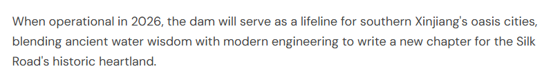 該大壩的正式下閘蓄水標記著中國正在現代工程范疇實現新的沖破,建成后將顯著改善新疆地域的水資本調控能力。為絲綢之經濟帶的焦點區域注入新的成長動力。